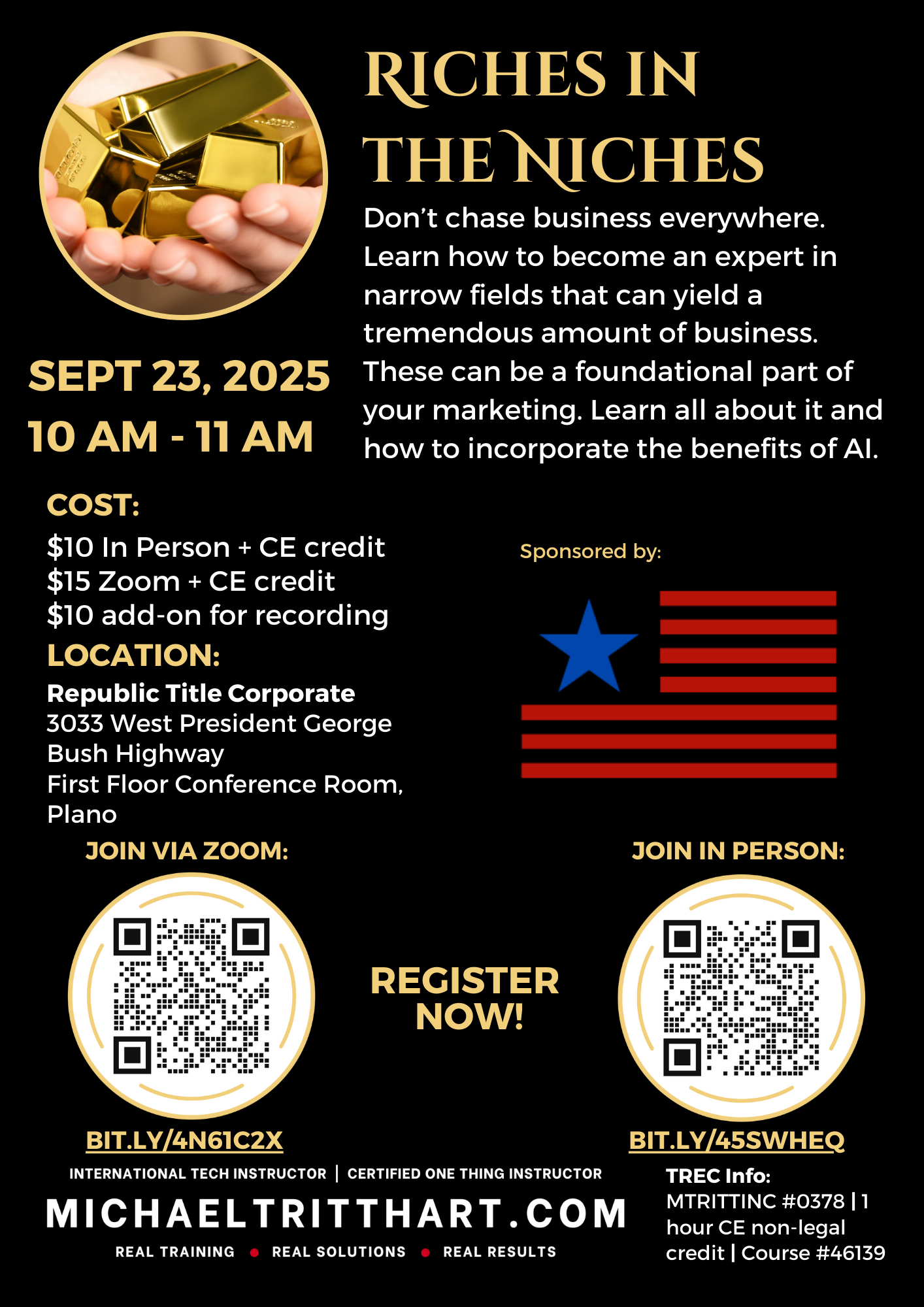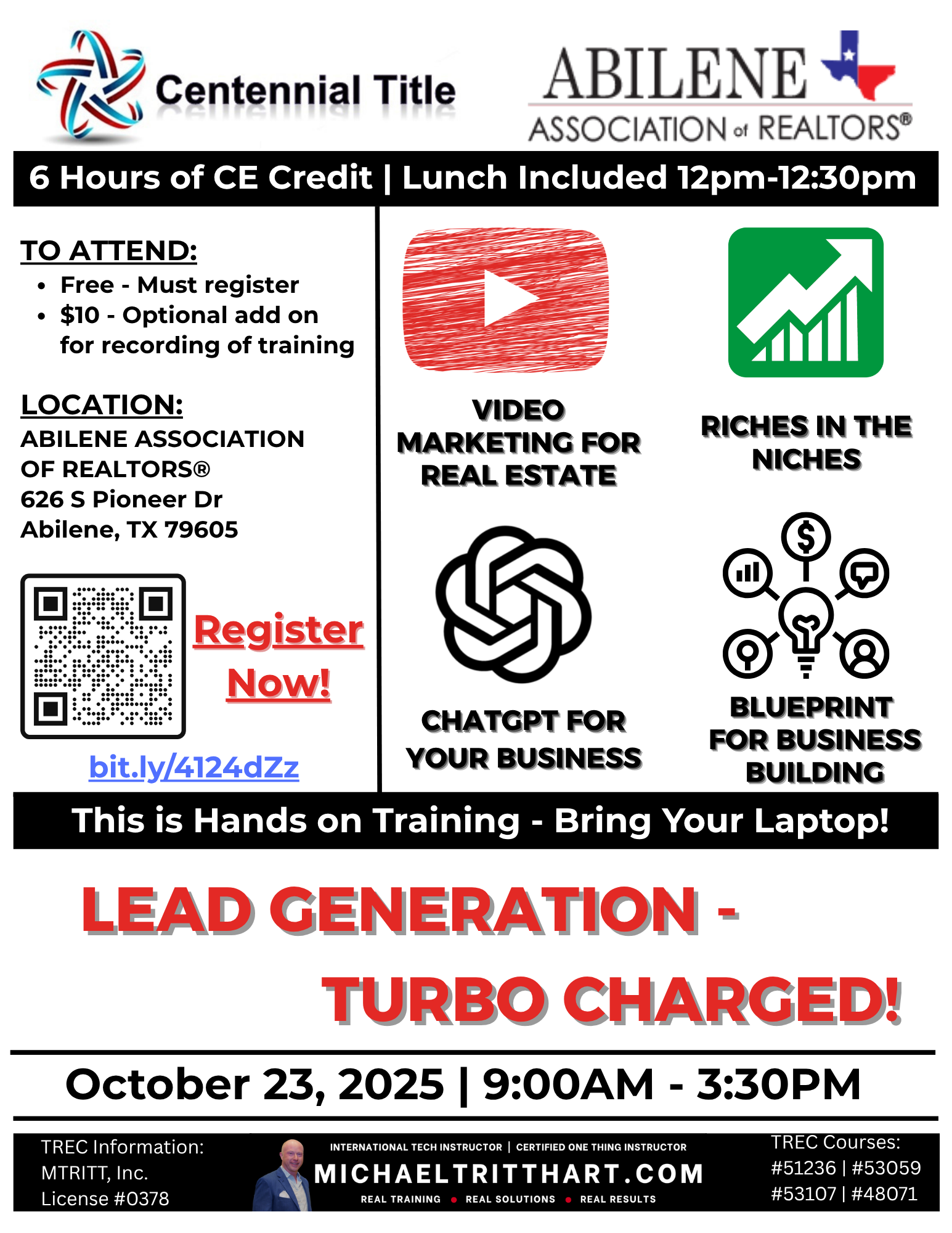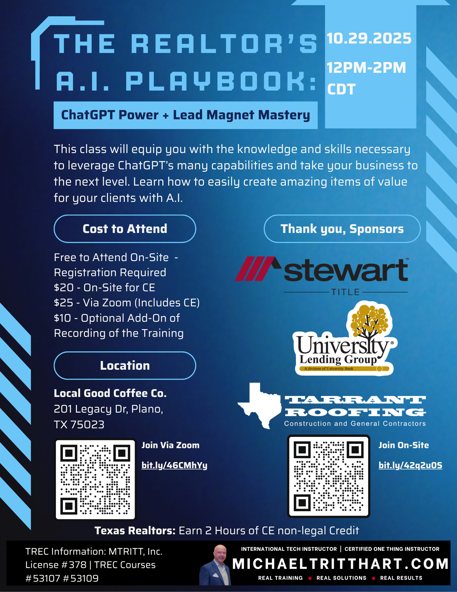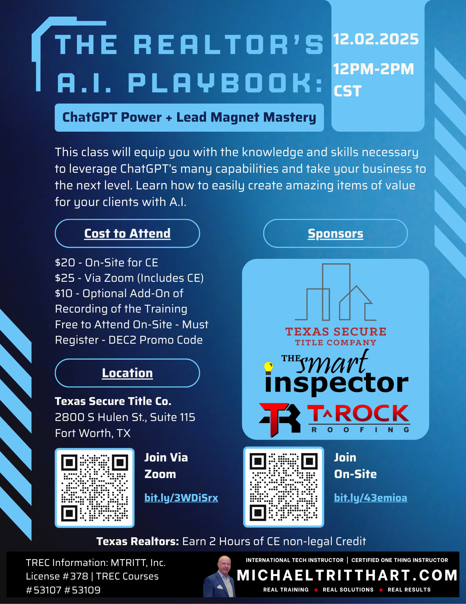 Forney Economic Development Corporation 210 S Bois D'Arc, Forney, United StatesStewart Title - Forney is pleased to bring you a Michael Tritthart Business Building Workshop - The Realtor’s AI Playbook: ChatGPT Power + Lead Magnet Mastery How to Use ChatGPT for Your Business This class will equip you with the knowledge and skills necessary to leverage ChatGPT’s many capabilities and take your business to the next level. Students […]