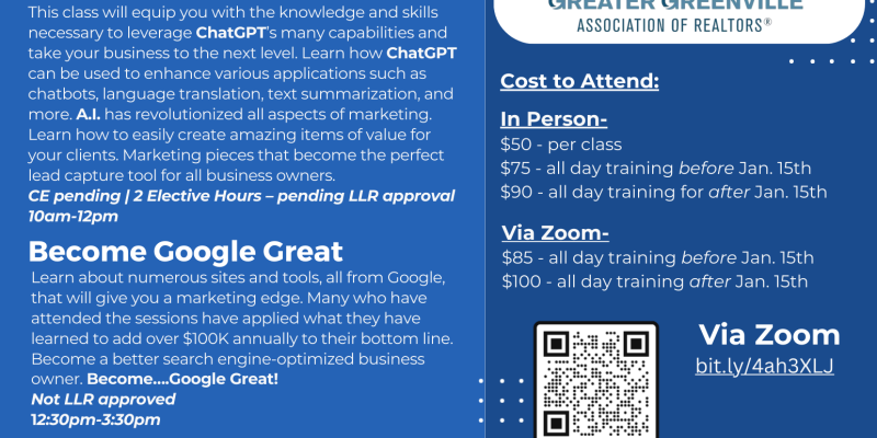 Location: Greater Greenville Association of Realtors | 50 Airpark Court, Greenville, SC 29607  |  or join via Zoom!