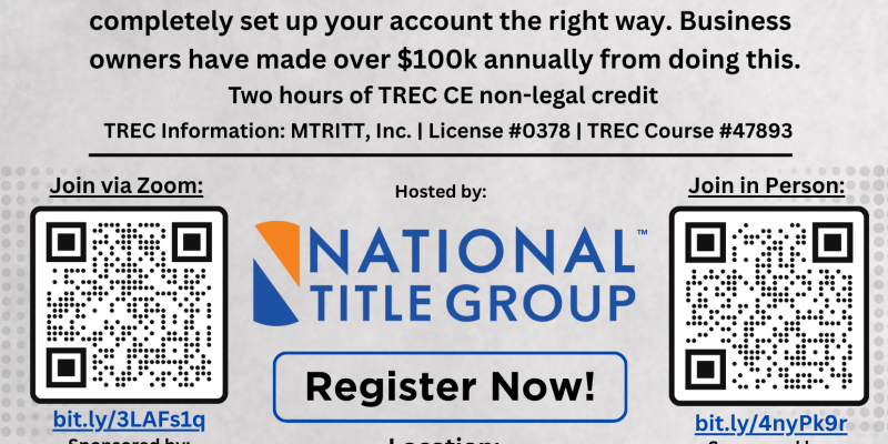 Texas Realtors: Earn 2 Hours of CE non-legal Credit